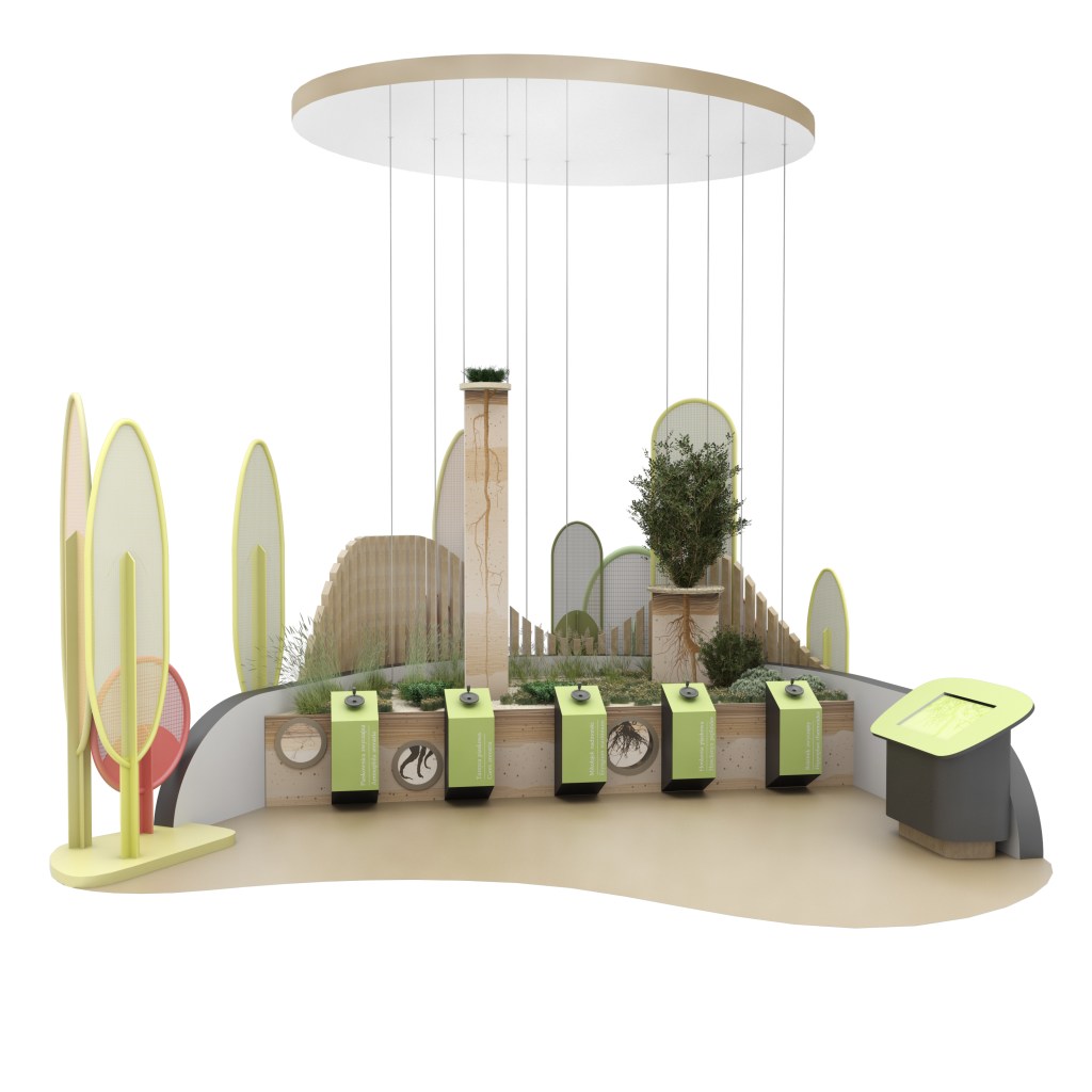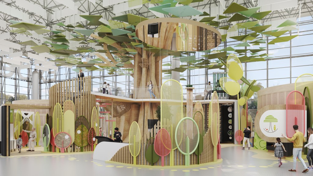 PL – Projekt modernizacji strefy Drzewo, będącej częścią wystawy stałej „Jestem Przyrodą” zakłada przede wszystkim stworzenie nowej oprawy wizualnej, która umożliwi wprowadzenie innowacyjnych, interesujących rozwiązań, a także ułatwi użytkownikom poruszanie się po wystawie. Centralnym elementem tej części wystawy jest sylwetka drzewa, którego pień oraz listowie stanowią nośnik treści – utrzymany w industrialnej stylistyce model.