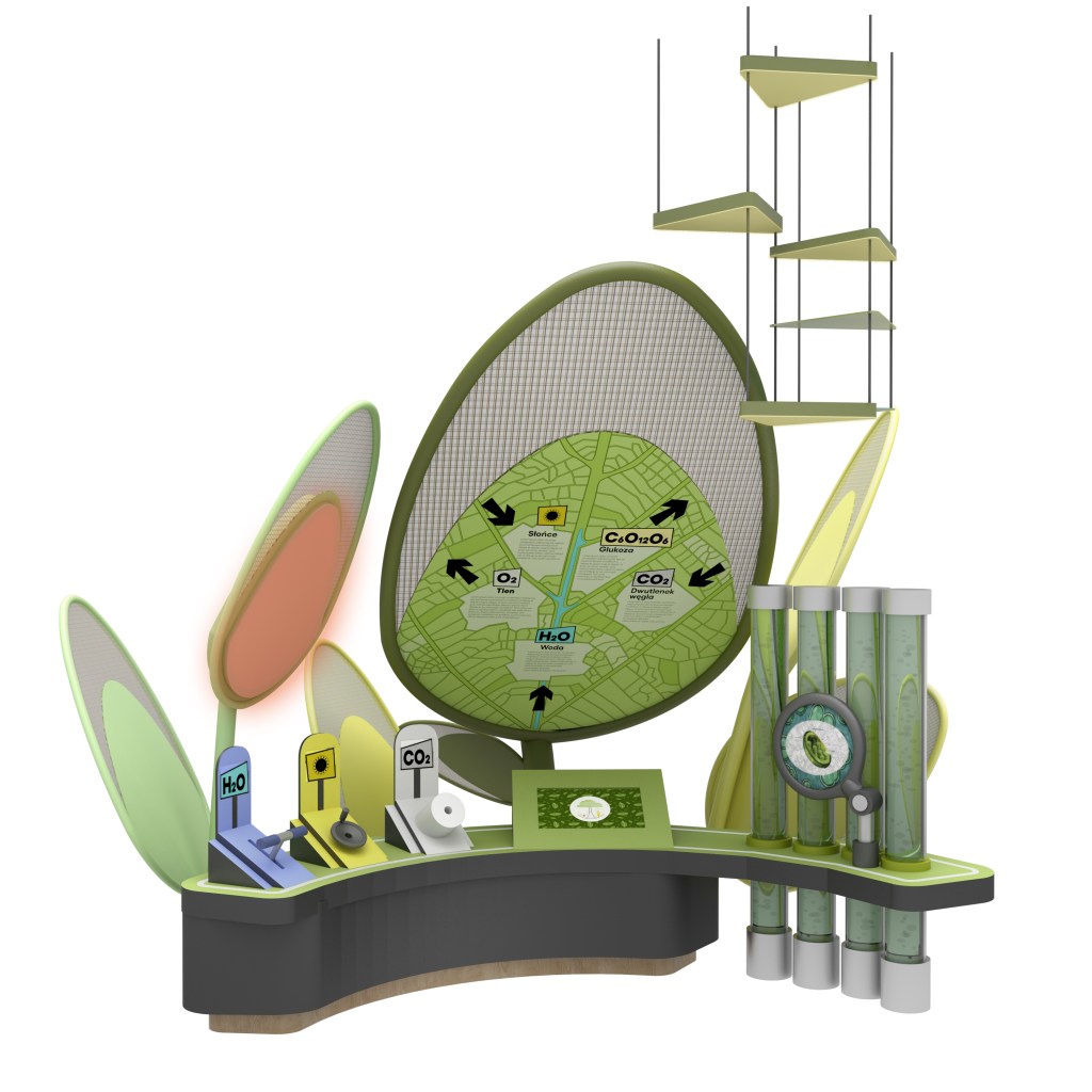 ENG – The project of modernization of the Tree zone, which is part of the permanent exhibition „I am Nature”, primarily involves the creation of a new visual setting that will enable the introduction of innovative, interesting solutions and will also make it easier for users to navigate around the exhibition. The central element of this part of the exhibition is the silhouette of a tree, whose trunk and leaves carry the content – a model in an industrial style.