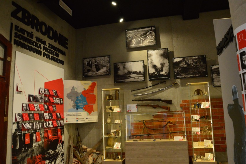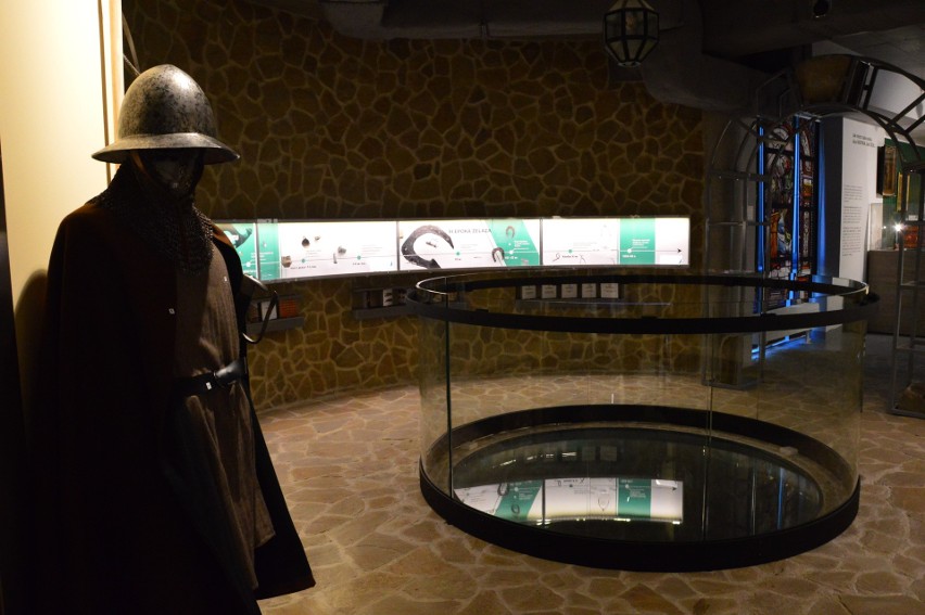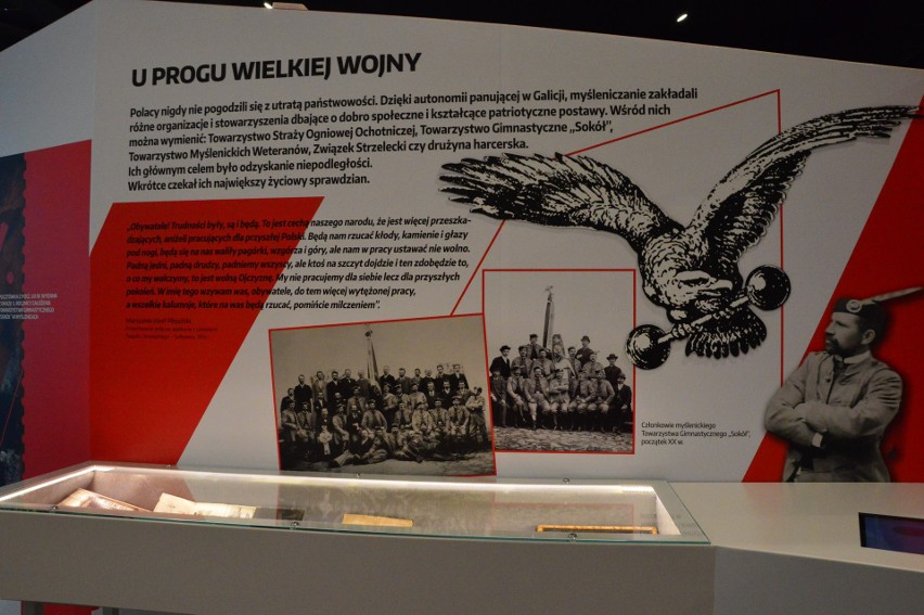 ENG – The whole thing is arranged in such a way that, on each of the three levels, the visitor will hear one of the three stories about Myślenice. On the first floor you will find, among others reconstruction of a fragment of the castle tower with a hunger dungeon, two inconspicuous stones which are the only preserved traces of the Myślenice manor house, the mayor’s office, Emil Kubala’s room, a noble manor, a Kliszczak’s hut and a smithy. Here we can also find rich ethnographic collections. On the lower floor, we find ourselves in a trench from the First World War, here are the profiles of the legionnaires from Myślenice. The history of the Jews from Myślenice, about 1,300 people, was also depicted here. They were transported to the death camp in 1942. The lowest floor of the Museum is occupied by the exhibition „The inhabitants of Myślenice fighting for democracy”. It guides visitors, among others through the interrogation cell in the building of the Security Office. We can find here the history of the Solidarity movement from Myślenice and its founders. buttons from the Galalit factory in Myślenice and a giant pen with the image of John Paul II, also from the factory in Myślenice. The patrons of this exhibition are workers, and it ends in 1989.