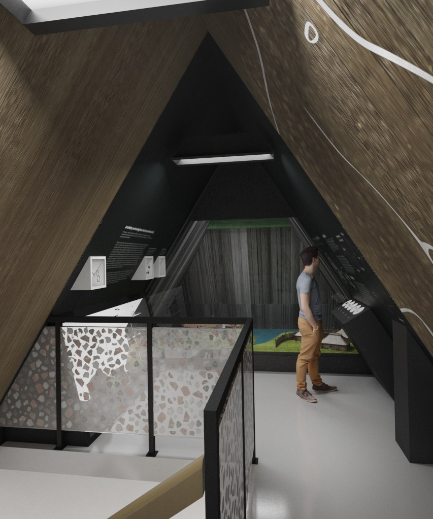 PL – Projekt aranżacji parteru siedziby jednego z Parków Krajobrazowych, pozwolił nam zagłębić się w gwarę Lubawską czy poznać do czego jest „masterka” przy wykopywaniu Torfu. Cały obiekt pozwoli wam poznać region od strony etnograficznej i przyrodniczej. Część przyrodniczo-archeologiczna Projektu aranżacji siedziby jednego z Parków Krajobrazowych, zaskoczy zwiedzających zachowaniem oryginalnego koloru stolarki, ale w kontraście do jasnych kolorów. Wiele treści poświęcone jest sercu tego regionu czyli rzece. Dowiedzieć się można jak tworzą się torfowiska oraz jak ważne jest ich znaczenie.