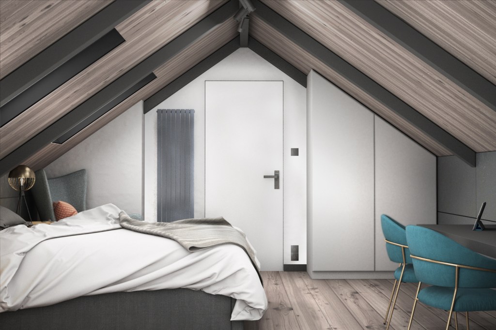 Potrzebujecie miejsca do pracy? Jest chowany stół. Potrzebujecie dodatkowego łóżka? Jest i łóżko. Przestrzenie zazwyczaj nieużytkowe na poddaszach mogą stać się naszymi sprzymierzeńcami.